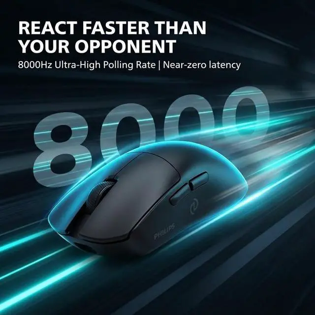 Experience elite performance with the PHILIPS 9718 wireless mouse, engineered for gamers and professionals who demand precision, comfort, and reliability. This wireless gaming mouse delivers ultra-accurate 30000 DPI tracking, ensuring smooth control and fast response for competitive gameplay and everyday productivity. Built as an ergonomic mouse, its ultra-lightweight 45g design greatly helps reduce wrist pain and hand fatigue, making long gaming sessions or extended workdays feel effortless. With tri-mode connectivity 2.4G wireless, Bluetooth, and wiredyou can switch seamlessly between devices, whether using it as a wireless mouse for laptop, a bluetooth mouse for laptop, or a dependable computer mouse wireless for desktop setups, including MacBook Air and PCs.