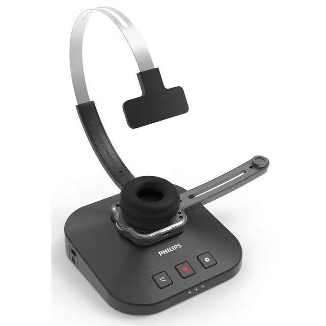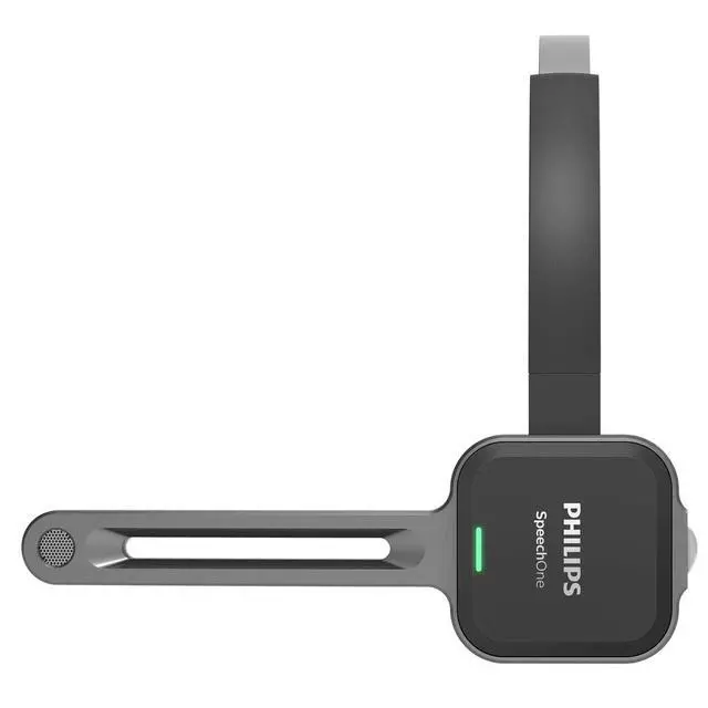 The only professional dictation headset with a precision microphone and lossless audio transmission Philips SpeechOne Wireless Dictation Headset has been specially designed to match the needs of users who frequently use dictation or speech recognition to create documents. The premium decoupled microphone offers crystal-clear recordings, perfect for accurate transcriptions. Ultra-comfortable and ergonomic design, personalized wearing options and hygienic exchangeable cushions make the headset the perfect work companion in both hospitals and offices alike.