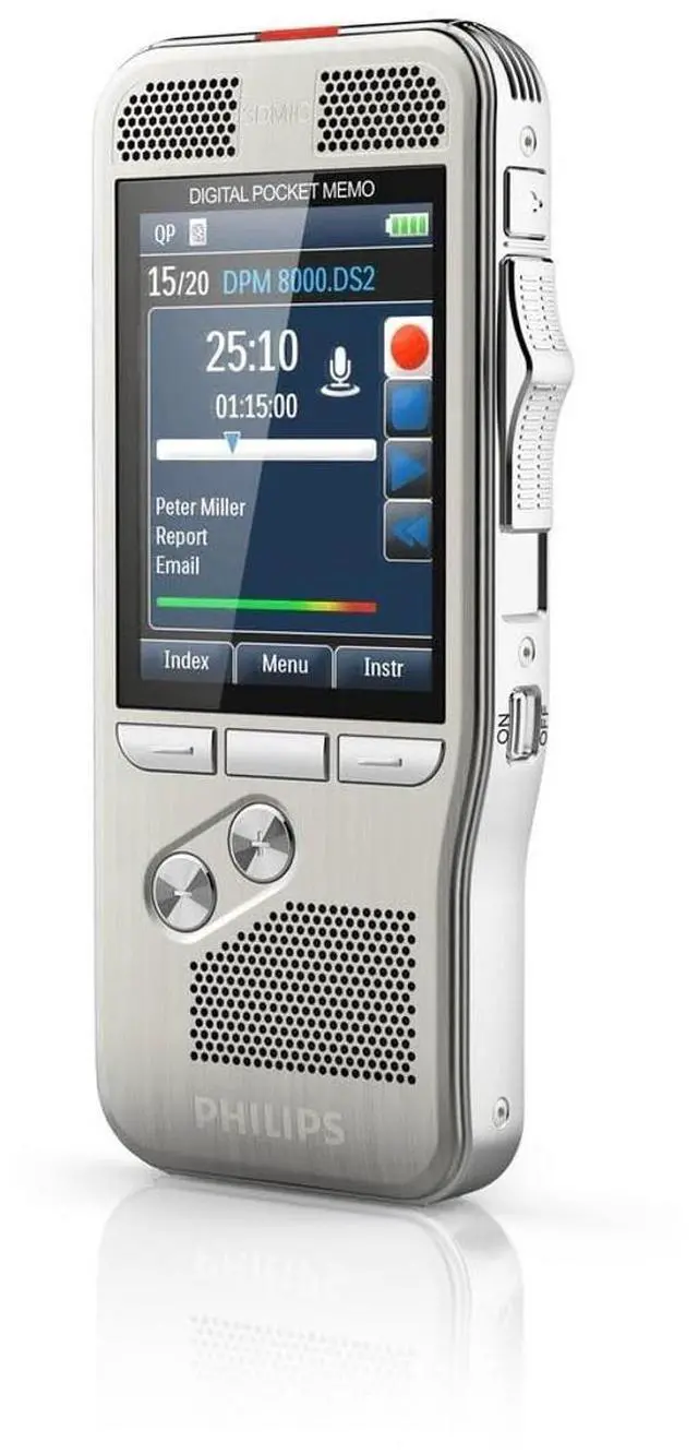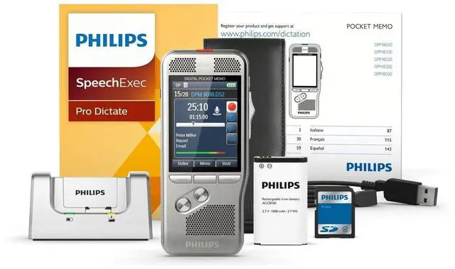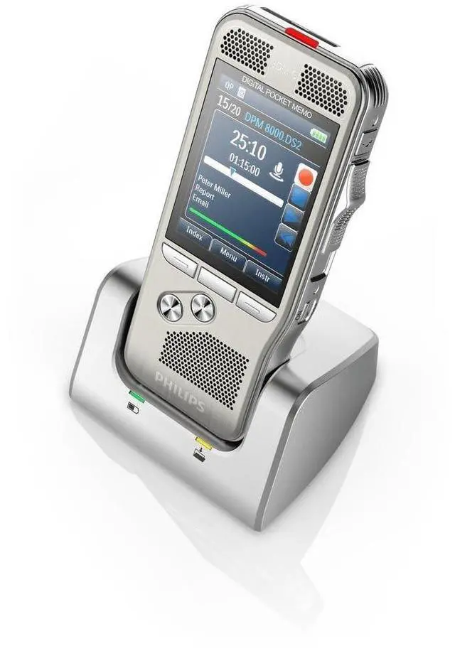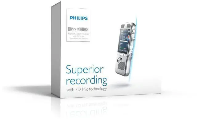 The Pocket Memo voice recorder takes dictation to a new level. Breakthrough 3D Mic technology delivers best audio quality in any recording situation. Its robust yet lightweight stainless steel design offers perfect ergonomics for working over longer periods of time. Coupled with SpeechExec Pro software for efficient data management and a docking station for uploading your files, going from your voice to your text document has never been quicker.