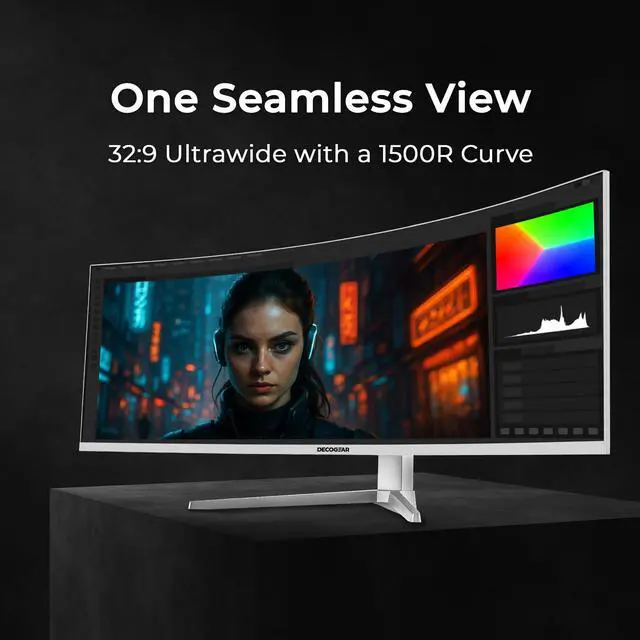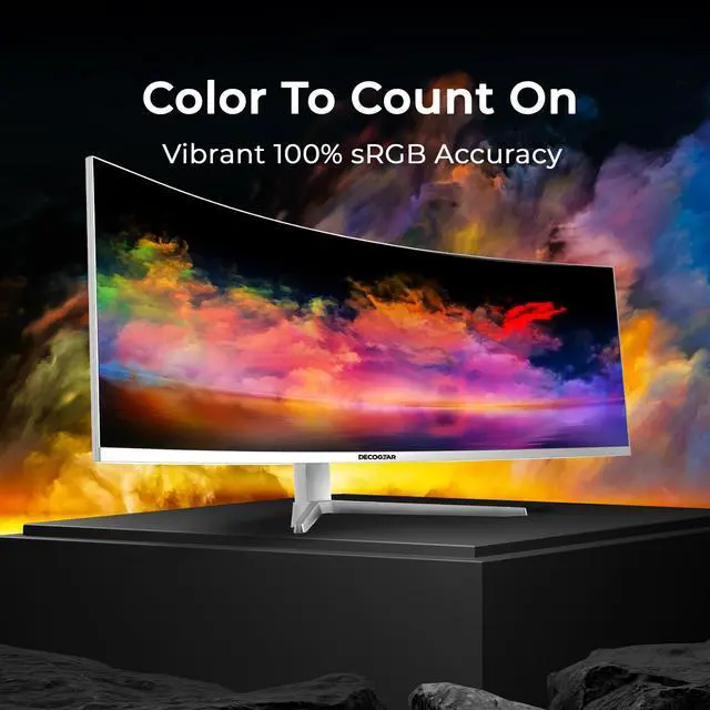STUNNING 49 5K DQHD ULTRAWIDE DISPLAY (5120X1440) - Get the screen real estate of two QHD monitors in one seamless, uninterrupted view - ideal for video editors, content creators, and multi-app productivity without the bezel distractions. ^^ ELEGANT 1500R CURVED WHITE DESIGN - The immersive curve enhances your field of vision while the clean white finish elevates your workspace with a modern aesthetic that looks great in both home and professional environments. ^^ ONE-CABLE USB-C SIMPLICITY (65W CHARGING) - Eliminate cable clutter with a single USB-C connection that powers your laptop, transfers data, and sends video - perfect for clean desk setups and hybrid workflows.