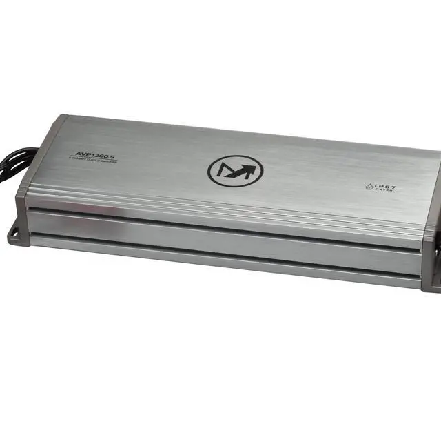 CONFIGURATION: AVP 1200.5 delivers 1200W total RMS power with 600W dedicated to four high-frequency speaker channels and 600W to a specialized subwoofer channel, providing complete audio system control from a single compact amplifier ^^