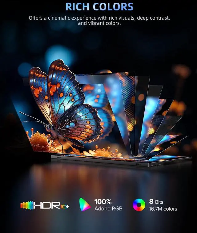 Ultra-Bright Display: With up to 600 nits brightness, HDR support, and a high 2000:1 contrast ratio, this high brightness travel monitor ensures vivid, punchy visuals even in bright indoor or outdoor