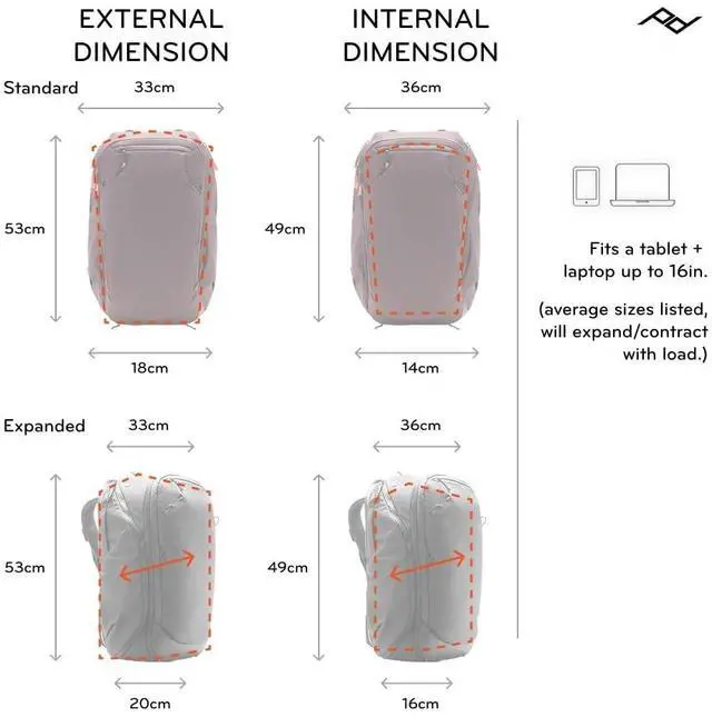 ^^ DESIGNED TO ADAPT: Expandable from 35L to 45L, this carry on approved pack adjusts to fit your load. Side pockets expand to hold bottles or tripods, while top, side, and rear access points keep your gear within easy reach. ^^ DURABLE DETAILS, CLEAN