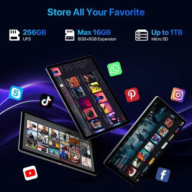 ^^ +: UMIDIGI G7 pro tablets offers 16GB RAM (8+8 virtual memory) and 256GB ROM, expandable up to 1TB with an SD card. tablet have plenty of photos, and videos, ensuring you never run out of storage.