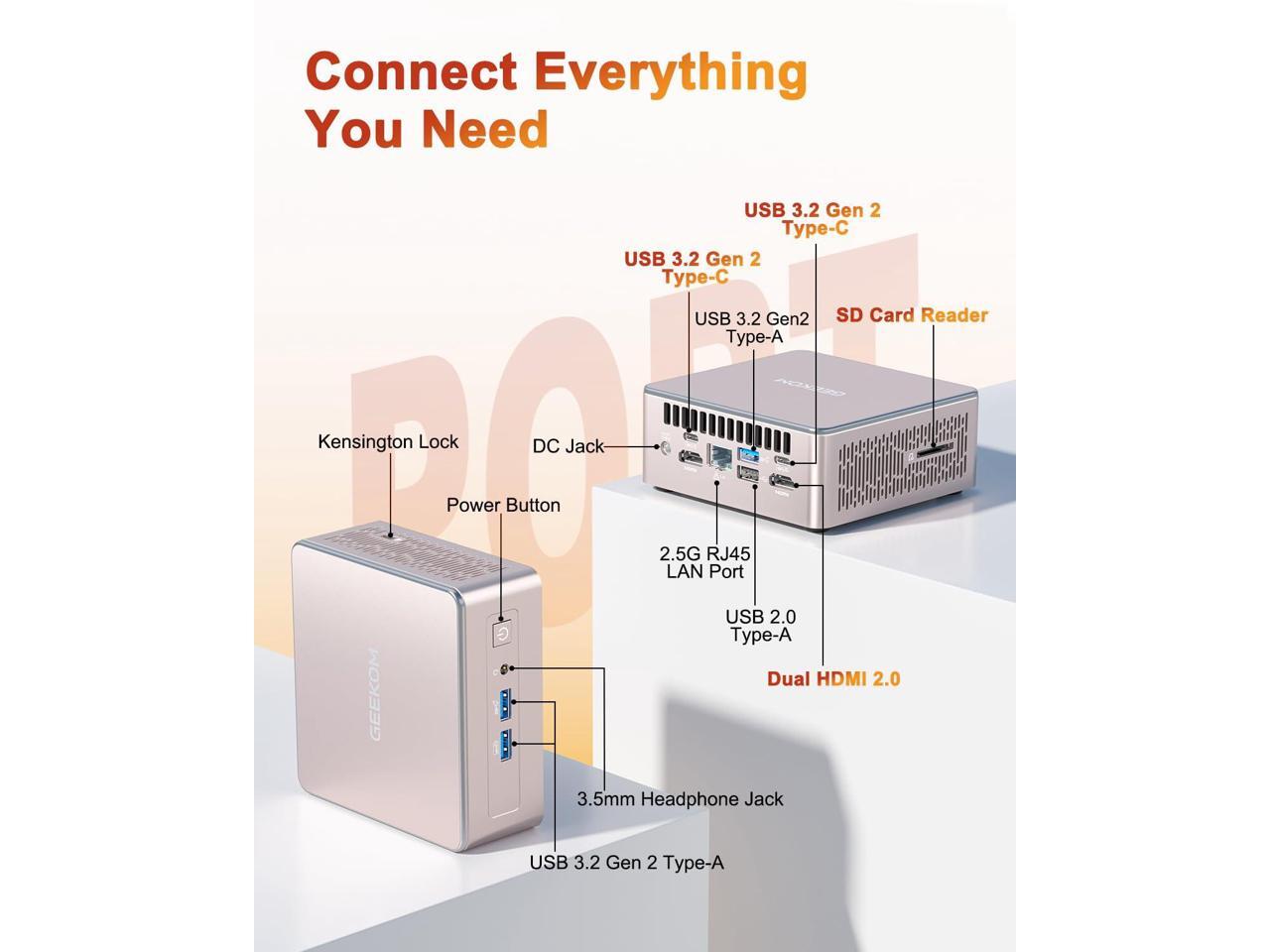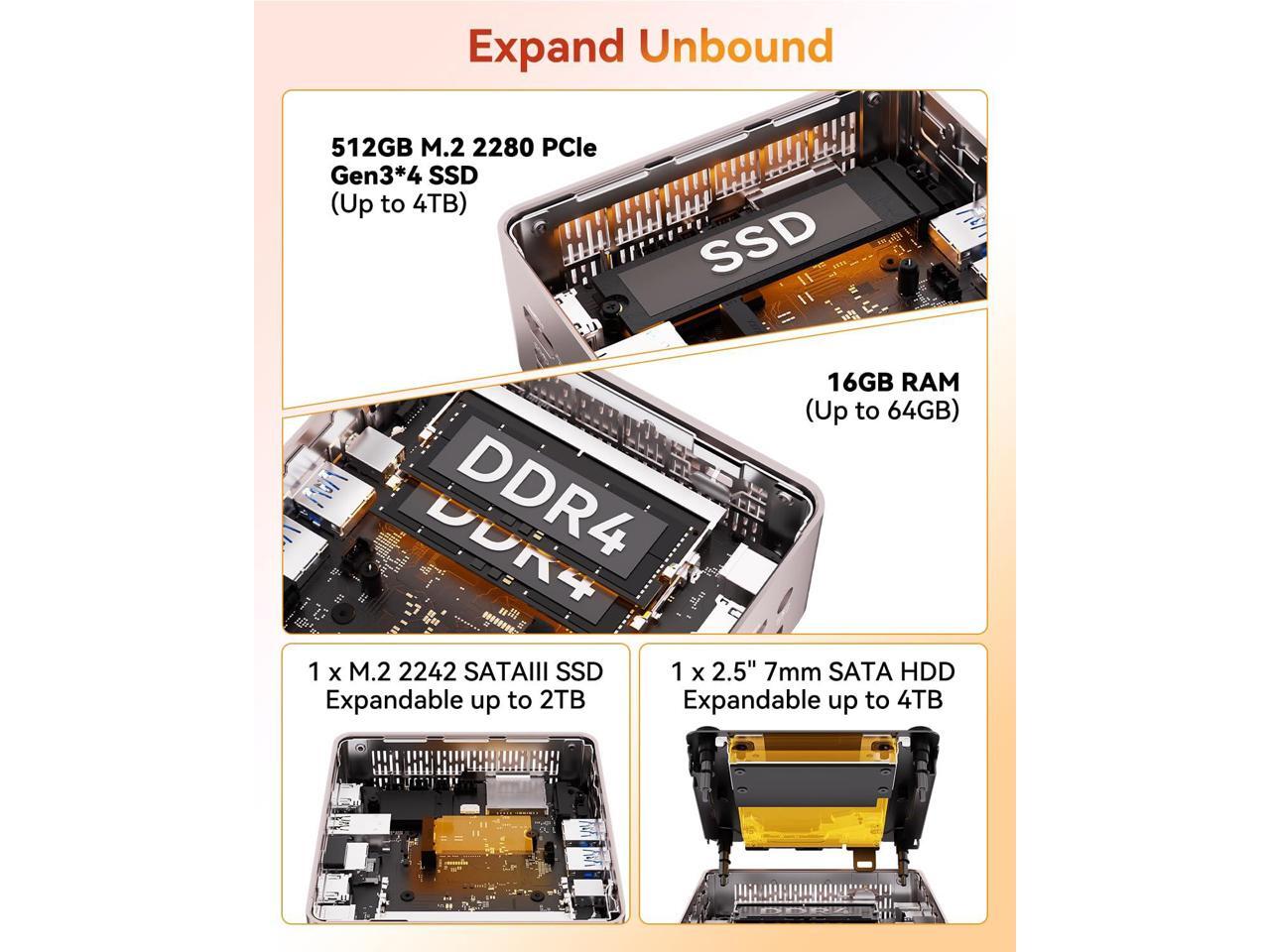 - [Engineered to Endure] A5 mini computer is engineered with a 3x-reinforced ABS+PC shell, strategically placed metal mid-frame, and baseplate for optimal strength-to-cooling balance. Tool-free upgrades, vibration-damping feet, and 3D antenna deliver durability without compromiseall the toughness you need, without the extra bulk.