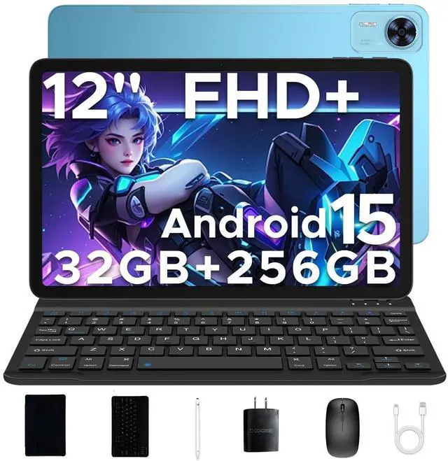 DOOGEE T36 12 inch Tablet with Keyboard, Android 15 Tablet 20GB+256GB/2TB Expand Octa-Core Gaming Tablets, 8800mAh, FHD+ Touchscreen with sim Card Slot, WiFi 5, Dual Camera, BT 5.0, Widevine L1, Blue