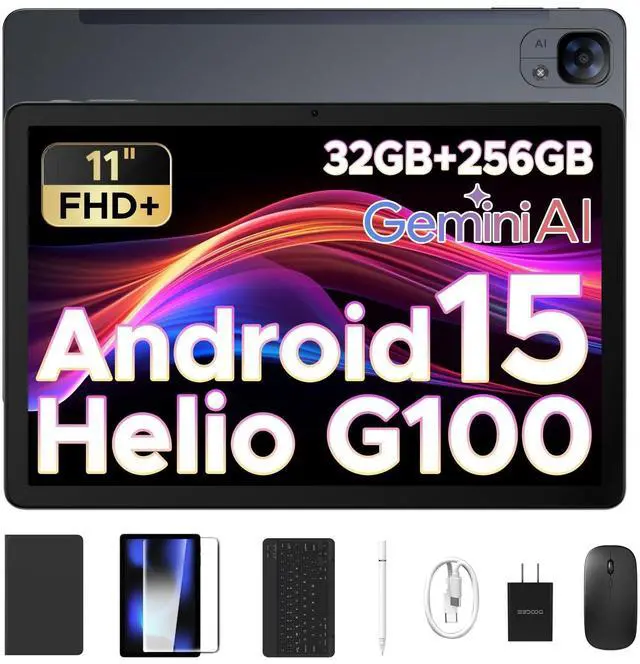 The DOOGEE Tab E3 is a feature-packed 11 inch Android 15 tablet designed for productivity, entertainment, and on-the-go convenience. Powered by the Helio G100 octa-core 6nm processor and enhanced by Gemini AI, it delivers 40% faster app switching than Android 14 tablets. With 32GB RAM (8GB+24GB expandable), 256GB storage, and support for up to 2TB TF cards, it handles multitasking with ease. The 90Hz FHD+ display offers smooth visuals for gaming, streaming, or browsing, while the 8800mAh battery keeps you powered all day. With 4G LTE dual SIM support, PC-mode compatibility, and OTG reverse charging, this Android tablet is built for modern life.