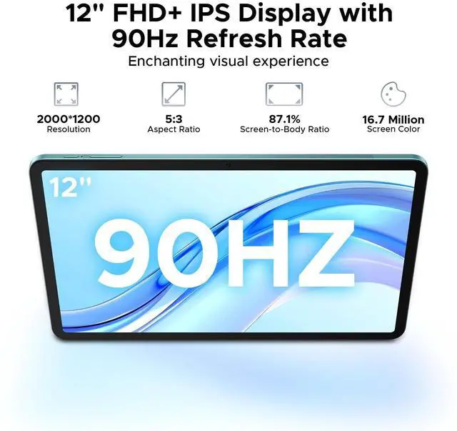 " + +- Immerse yourself in a cinematic 12-inch FHD+ (2000x1200) IPS display with 87.9 % screen-to-body ratio and 90Hz refresh rate. This Android Tablet brings visuals to life with vibrant colors, wide viewing angles, and ultra-smooth scrollingideal for movies, design work, and fast-paced games. The 2K resolution ensures razor-sharp text and images, while the 90Hz panel reduces eye strain during long sessions. With a titanium-inspired 7.4 mm ultra-slim body, the Tab E3+ Tablet combines portability with an expansive screen. this Android Tablet offers a premium viewing experience rivaling far costlier devices.