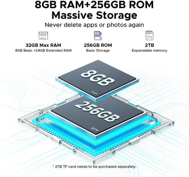^^ + The DOOGEE Tab E3+ tablet runs on the latest Android 15 system, combining smooth performance with cutting-edge features like AI optimization, smart motion sensing, and advanced privacy control. Powered by the Helio G100 octa-core 2.2GH z processor built on a 6nm process, this Android tablet handles multitasking, gaming, and productivity tasks with ease. Whether you're editing documents or streaming in HD, the E3+ keeps everything responsive and energy efficient, making it an ideal 12 inch tablet for work and play. ^^ (+) + / Enjoy unbeatable performance with 32GB RAM (8GB + 24GB expandable) and 256GB of fast UFS storage.