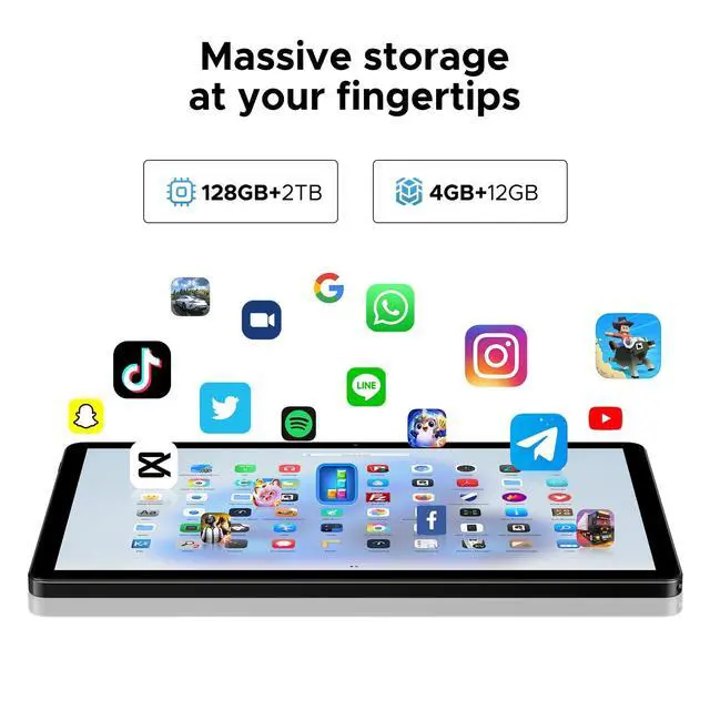 Whether you are a staunch fan or enjoy watching TV shows back-to-back, you can watch the latest Widevine L1-certified shows at 1080P resolution on YouTube, HBO, or Prime Video. ^^ + + DOOGEE U11 Android 15 Tablet features 16GB RAM (4GB + 12GB RAM expansion) and 128GB ROM. MicroSD/TF memory expansion (12GB-2TB) is supported, and this memory can be set as Extra storage or portable storage for the tablet. the new Memory Manager provides cleaning suggestions to free up space on the tablet (including cleaning Junk files, Delete duplicates, Delete large files, and Delete downloaded files).