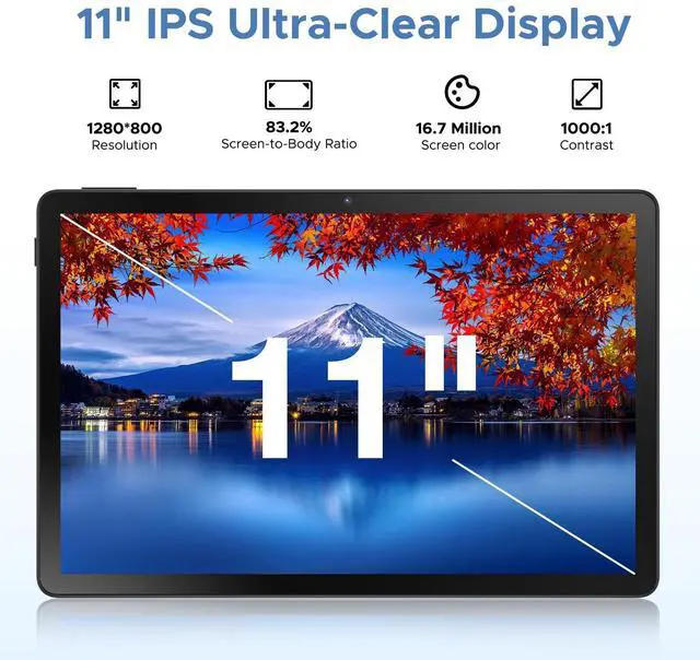 With OTG reverse charging, it doubles as a power bank, while AI-powered battery management optimizes efficiency, reducing power drain during standby. Stay powered longer, wherever you go! ^^ " & The DOOGEE U11 Pro android tablet features an immersive 11-inch display with a 90Hz refresh rate, delivering ultra-smooth scrolling, vibrant colors, and crisp details for gaming, streaming, and multitasking. With Widevine L1 certification, enjoy 1080P HD content on Prime Video, and more without compromise. The adaptive brightness feature ensures optimal viewing comfort in any lighting environment, making every visual experience more enjoyable.