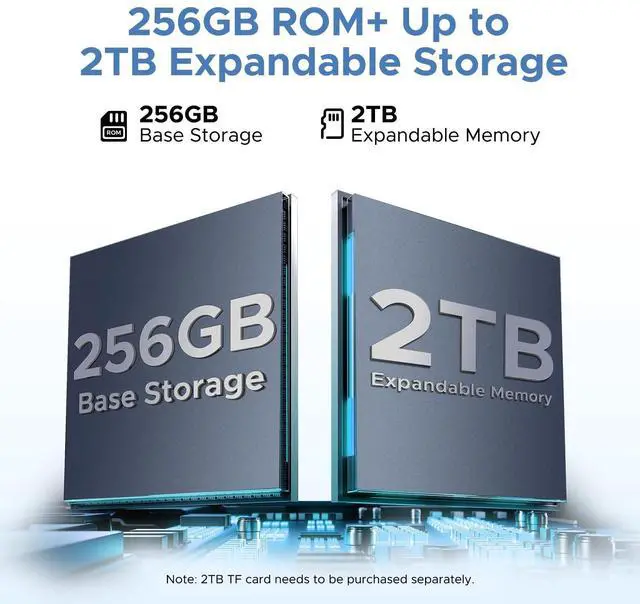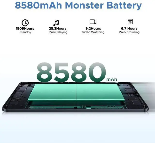 Expand your storage up to 2TB via MicroSD/TF card to store all your apps, media, and files effortlessly. The new Memory Manager provides smart cleaning suggestions to free up space by removing junk files, duplicates, large files, and unnecessary downloads, keeping your tablet optimized for peak performance. ^^ & -. The DOOGEE U11 gaming tablet is equipped with a powerful 8580mAh battery, providing extended usage for streaming, gaming, and productivity without constant recharging. Despite its large battery capacity, the tablet maintains an ultra-slim 7.9 mm profile, ensuring easy portability without compromising durability.