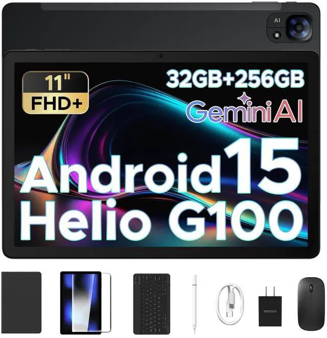 Newest Android 15 + Gemini AI Redefining Tablet IntelligenceThe DOOGEE Tab E3 android tablet combines the latest Android 15 system with Gemini AI to deliver real-time translation, smart text suggestions, and AI-enhanced multitasking. Whether you're in a virtual meeting or writing a report, the AI assistance makes tasks faster and more efficient. Powered by the 6nm Helio G100 octa-core chip, this android 15 tablet provides a 40% faster app-switching experience compared to previous Android 14 models. Its a true productivity booster for work, school, or entertainment on the go. ^^ 32GB RAM + 256GB Storage & Helio G100 Chip Built to MultitaskSay goodbye to lag with the DOOGEE Tab E3 android tablet.