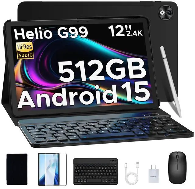 Package Includes: 1 x T40PRO 12inch Tablet, 1 x Business leather case, 1 x Bluetooth Keypad, 1 x Bluetooth mouse, 1 x Touching Pen, 1 x Charger and Type-C USB Cable, 1 x Tool for taking card, 1 x Manual, 1 x Tempered Glass Protective Film. ^^ 12 Inch 2.4K In-Cell Display & Sleek Lightweight DesignExperience stunning visuals with a DOOGEE 12 inch tablet featuring a 2.4K FHD In-Cell Touchscreen. With a sharp 2.4K resolution, enjoy crisper details and vibrant, true-to-life colorsperfect for movies and entertainment. The 16:10 aspect ratio and wide color gamut deliver a more immersive viewing experience. At just 578g and 7.66 mm thick, the sleek metal body is lightweight and ultra-portable, making it easy to take anywhere. ^^ 20GB RAM + 512GB Storage with Helio G99 Octa CoreAndroid 14 tablet with 20GB of RAM (8GB physical + 12GB virtual) and 512GB of internal storage. DOOGEE tablet offers ample space for all your movies, music, eBooks, and moreplus, tablets support up to 2TB of expandable storage via a TF card. Powered by the Helio G99 octa-core processor (2x ARM Cortex-A76 2.2GH z + 6x ARM Cortex-A55 2.0GH z), youll enjoy seamless gaming and fast app performance for a smooth and responsive experience.