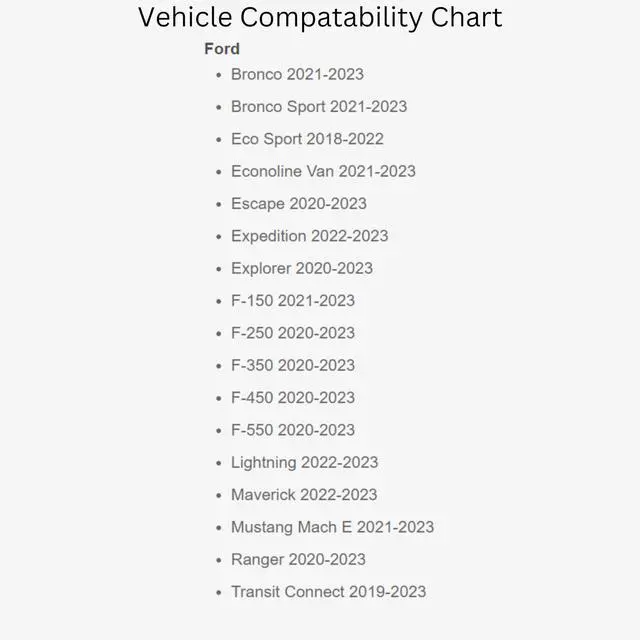 • Suitable for 2018-2023 Ford vehicles: Compatible with these models