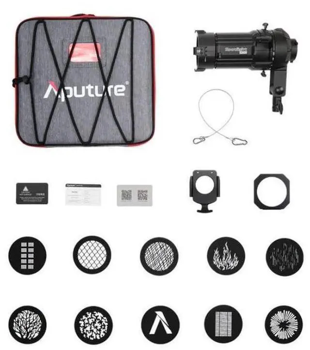 With 19 Degree interchangeable lenses, the Spotlight Mini gives users the ability to fine-tune the size and focus of their projector modifier. The included gobo clip accepts M-size metal and glass gobos, with 10 M-size gobos included in the kit for added creative flexibility. An optional Spotlight Mini Iris is also available to further refine beam size without repositioning or swapping lenses. With its integrated 4-leaf cutter, standard gel frame, and durable all-metal construction, the Spotlight Mini offers a complete projection solution in a compact footprint. Its included soft carrying case ensures portability and protection, making it an essential tool for professionals who need precision lighting control in