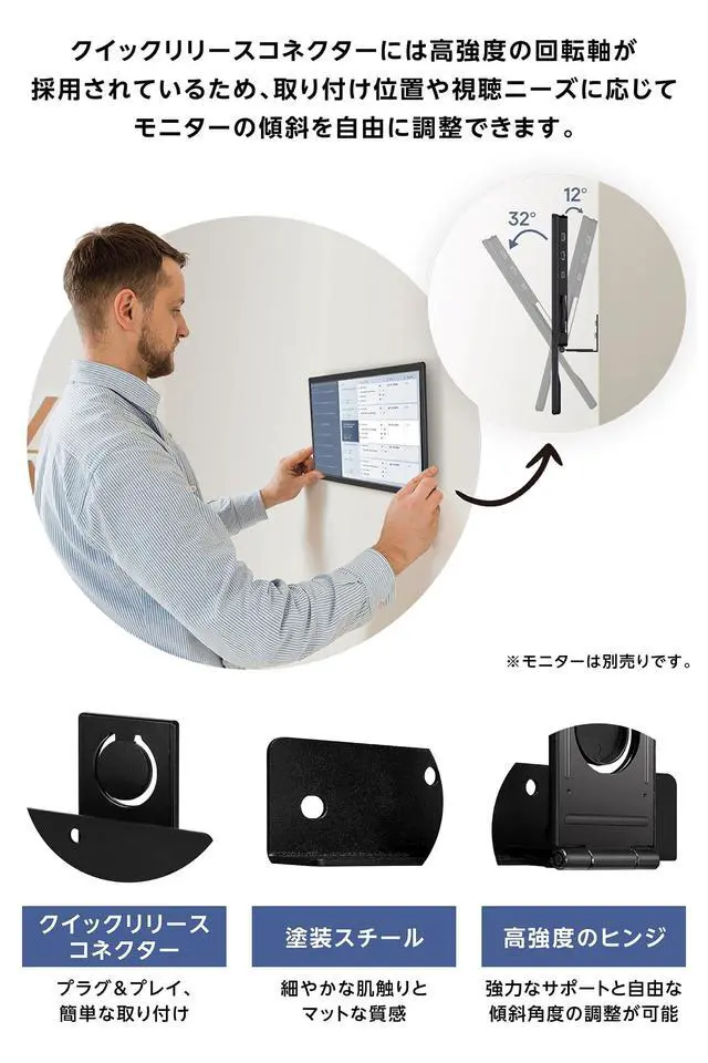 You can also use this product to fix the monitor directly to the wall (*Using the included tapping screws)