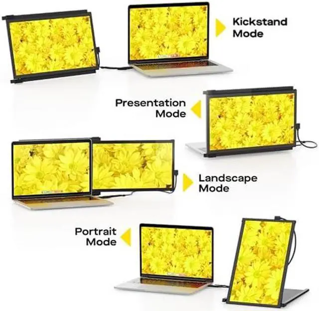 [(PLUG-AND-PLAY)] - Simply connect it to your laptop by choosing the appropriate connection from the USB-C or HDMI cable, attach the magnet according to the installation guidelines, and the laptop screen extender monitor portable is ready to use! Whether you flip fr