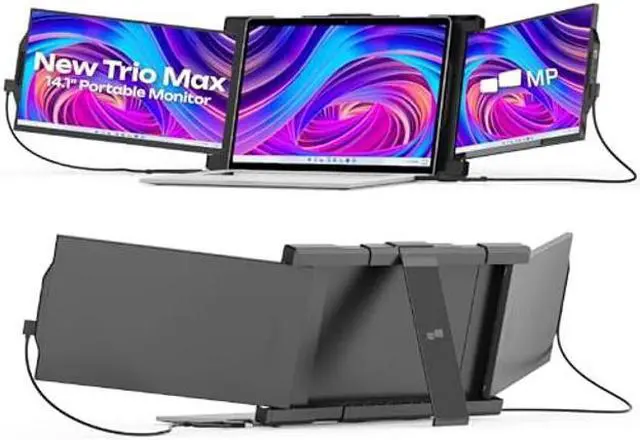 Mobile Pixels New Trio Max 14.1" Portable Monitor, Triple Monitor for Laptop, 1080P FHD IPS, with Plug and Play, Suitable for 15- 17.3 '' Laptop, Built-in Kickstand, Optional Magnets (Tri-Screen)