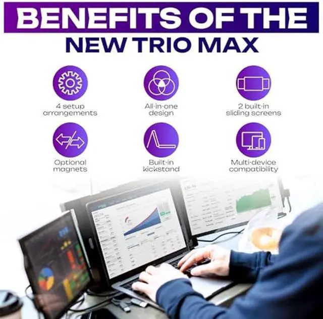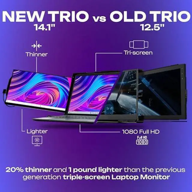 [(Trio Screen Laptop Monitor)] :The New Trio Max is 20% thinner and 1 lb lighter than the previous generation. It is made of durable materials, ABS and Aluminum. Integrates seamlessly with Windows, macOS, Android smartphones and Nintendo Switch.