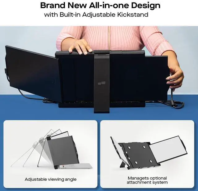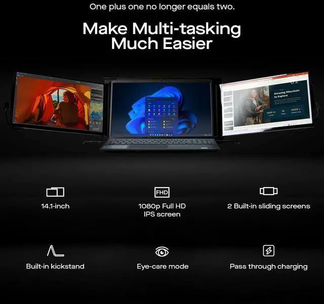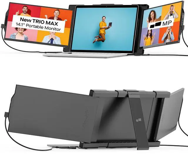 Upgraded TRIO MAX Triple Portable Monitor: The upgraded Triple monitor boasts two 14.1-inch FHD IPS monitor displays that are a perfect fit for 15''-17.3'' laptops; It provides vibrant colors and sharp visuals for enhanced productivity and entertainment