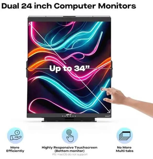 Highly Responsive Touchscreen: The lower screen of this vertical computer monitor features 10-point touch, providing a highly responsive and accurate touchscreen that allows you to easily navigate and interact with content (Not included macOS computers)
