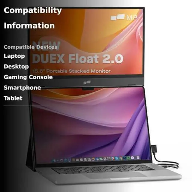 New Mobile Pixels Duex Float 2.0 Portable Stacked Monitor, FHD IPS 15.6" Laptop Screen Extender (Built-in Kickstand), USB C/HDMI Monitor Extender with Dual Speakers, Windows, MacOS, Switch, Android