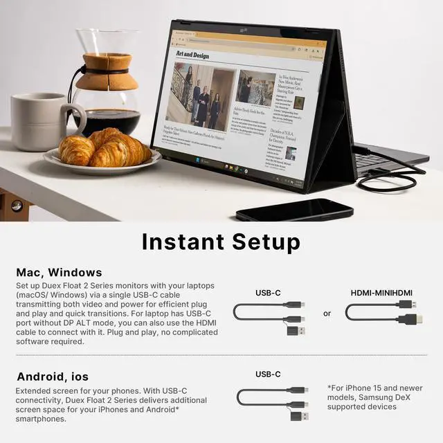 Universal Compatibility: Laptop, phone, tableteven your Nintendo Switch! The extender screen laptop works magically with Windows, Mac, iOS 15+, Android & ChromeOS. One cable = dual screens. Zero setup.