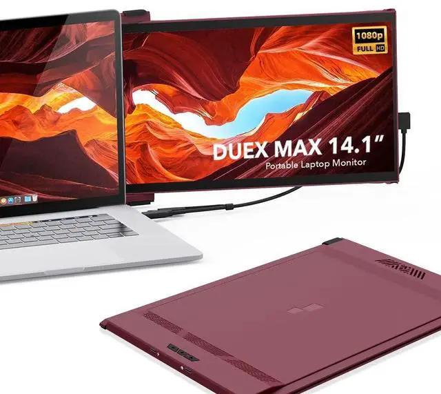 DUEX Max offers you true mobility with the most durable ABS and aluminum materials. Travel monitor 14.1" is more suitable for 14"-17" laptops, designed to withstand the wear and tear of carrying a laptop. With Duex Max monitor, you can have two screens anywhere you go! Perfect for travel, play outside and anywhere. ^^ Easy Set UpThe Rio Rouge Laptop Monitor is compatible with many devices including Windows, Mac laptop, Android, Switch and others. You just need to plug and play with a USB A/USB C cable to connect the device you are using to use the monitor.