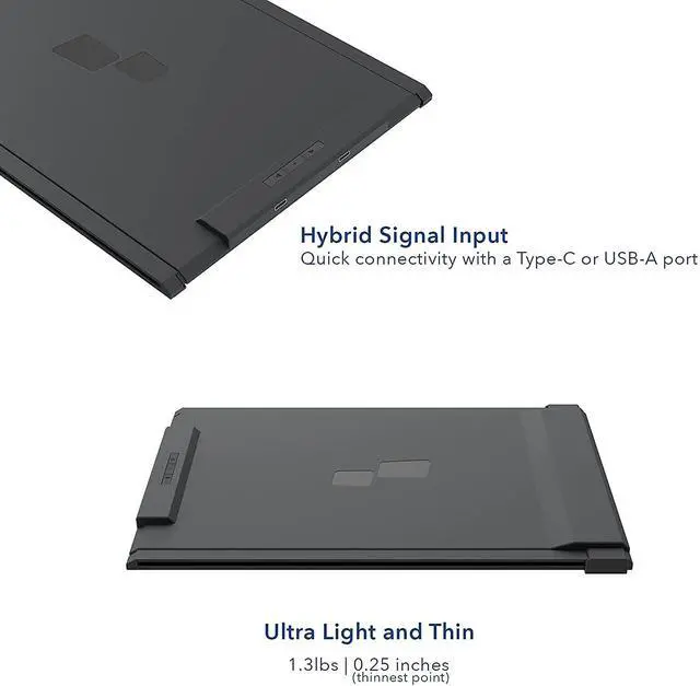 ^^ Super User Friendly: Simply "Magnet" you Trio monitor to the back of laptop with device-safe metal plates. PLUG and PLAY with ONE CABLE setup. Even no driver required when connect with USB C port. Trio care your eyes with blue light filters, anti-glare tech, and brightness adjustable features. Slim, light-weighted, portable design allows you take your monitor-upgraded laptop anywhere and feels no burden. ^^ Triple or Dual monitor as you prefer. Clip two Trio screens to your laptops for triple displays. Mobile Pixels innovated attachable monitors for laptops and upgraded Trio to more light, energy-saving and user friendly. This mobile display is 12.5 '' 1920x1080P IPS screen which offers rich and vivid colors from all viewing angles. Anti-glare Eye Care Brightness Adjustable second or triple screens attached to your laptop for easy travel