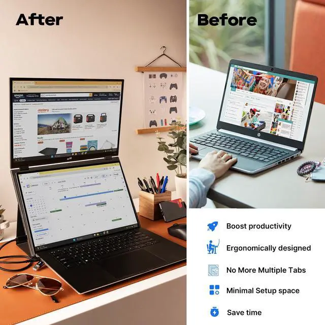 Complete Mobile Office: More than a second screen, it's a portable workstation with built-in stereo speakers, an anti-glare screen, and plug-and-play setup, maximizing efficiency anywhere
