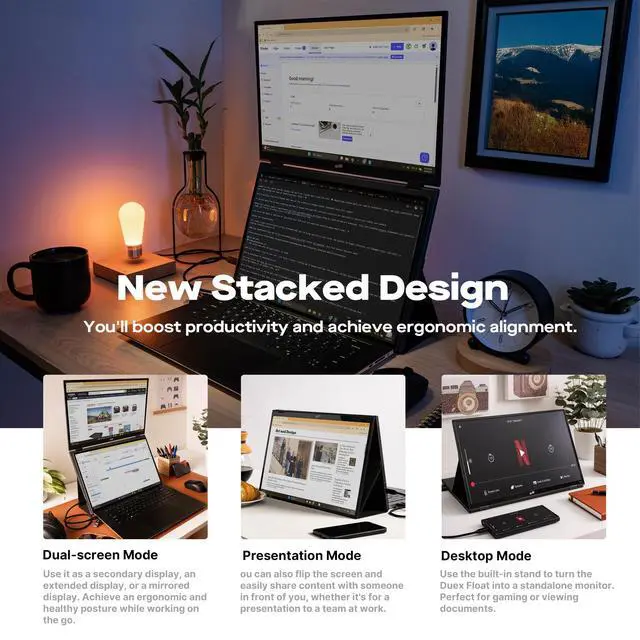 Ultra-Portable & Stacked Design: Our innovative stacked design makes it 33% lighter and 20% thinner than before, effortlessly fitting in your bag alongside your laptop for true on-the-go productivity ^^ 3-Mode