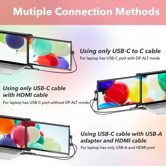 Play: Our laptop screen extender monitor portable features a plug and play function, allowing you to easily connect via USB-C or HDMI; Simply plug it in and slide it out to instantly expand your workspace ^^ Peace of