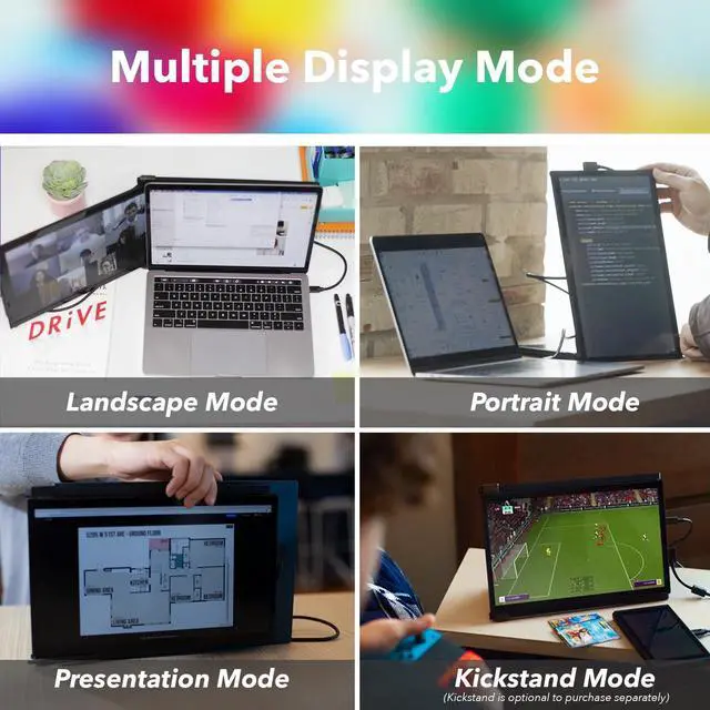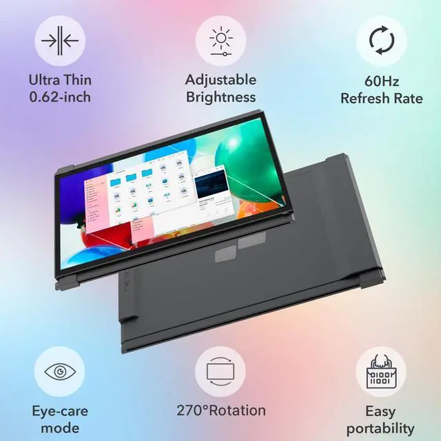 Image Quality: The 13.3 -inch portable external monitor is equipped with a 1920x1080 resolution, delivering outstanding image quality; it's ideal for laptops with 13''- 14.5 '' screens ^^ Ultra-Portable and