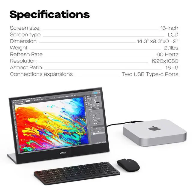 Perfect Visual Experience: By utilizing the latest LCD technology, the Mobile Pixels Glacne 16 inch monitor provides a full HD experience and vivid colors for any working conditions