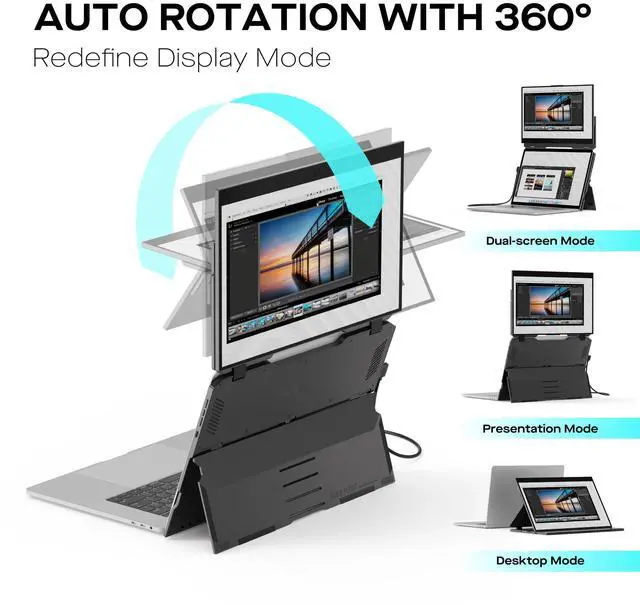 Flexible Modes: Experience the convenience of a 1080p touchscreen display with 10-point multi-touch capability; Choose between three viewing modes - dual-screen, presentation mode, and desktop mode - for versatile usage ^^ Easy Setup and