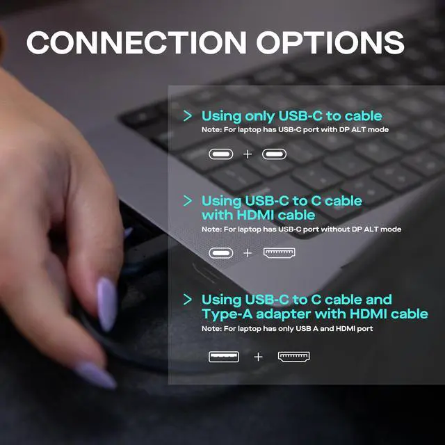 Wide Compatibility: Simply attach it to your laptop via optional magnets, flip up the screen, pop up the built-in kickstand, and connect the cable; The foldable monitor is compatible with any laptops, using USB-C or Mini-HDMI connections ^^