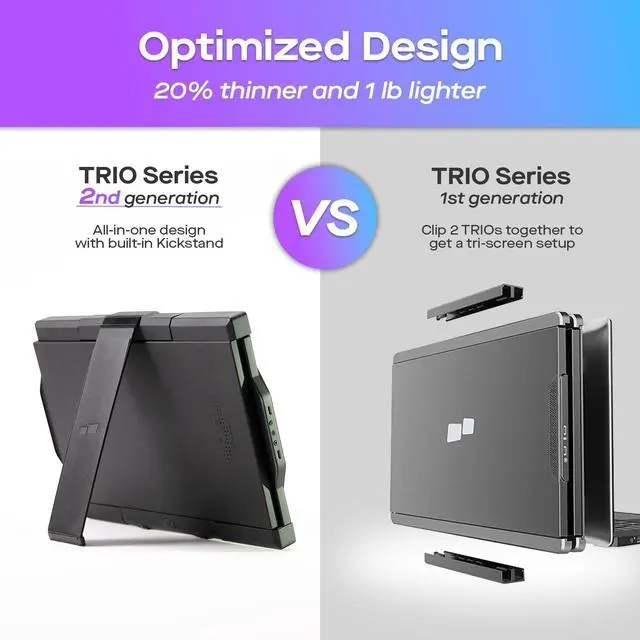 Laptop Monitor Extender: The New Trio portable monitor is 20% thinner and 1 lb lighter than the previous generation, making it easy to carry anywhere; It's also designed to reduce battery drain on laptops and boost productivity ^^ Plug and