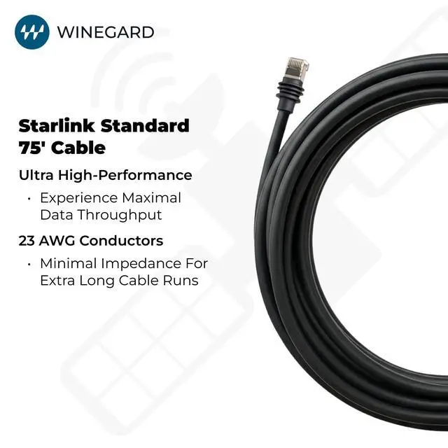Optimize your Starlink installation with Starlink Standard Cables, available in multiple lengths to suit any setup. These weather-resistant, high-performance cables ensure maximum signal integrity from your Starlink dish to your router.