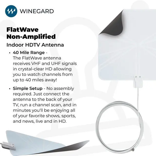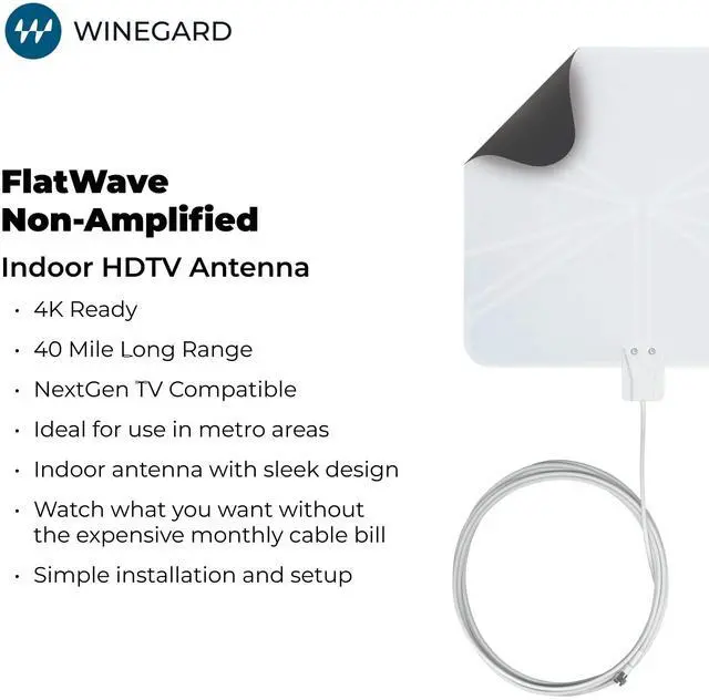 Winegard FL-5000 FlatWave Digital HD Indoor TV Antenna: Watch local news, weather, live sports and all of the top-rated shows for free, in HD, and with Dolby Digital Surround Sound with the FlatWave indoor digital TV antenna. Cut the cord and save! The average home pays over $750 for cable in just one year. Did you know the average household receives 189 Tv channels with cable, but uses only 17 of them? Watch the TV you want without the big monthly TV bill. Cut the cord and watch the top-rated TV shows for free!