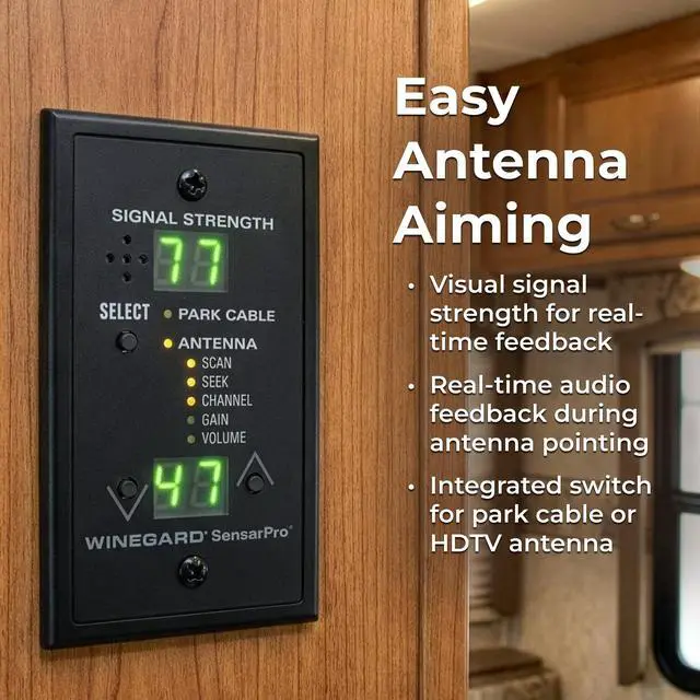 Also handy is the adjustable audio feedback to help lock in signal when the wall plate is out of sight or reach. The SensarPro works with all Winegard Sensar antennas and replaces the existing power supply. Proudly designed, tested and built in the USA by the makers of the first RV television antenna.