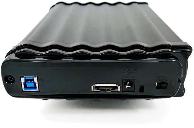 Package Content: external hard drive with HUB, USB and eSATA cables, 12V 3A DC Full range switching power adapter, and User manual.