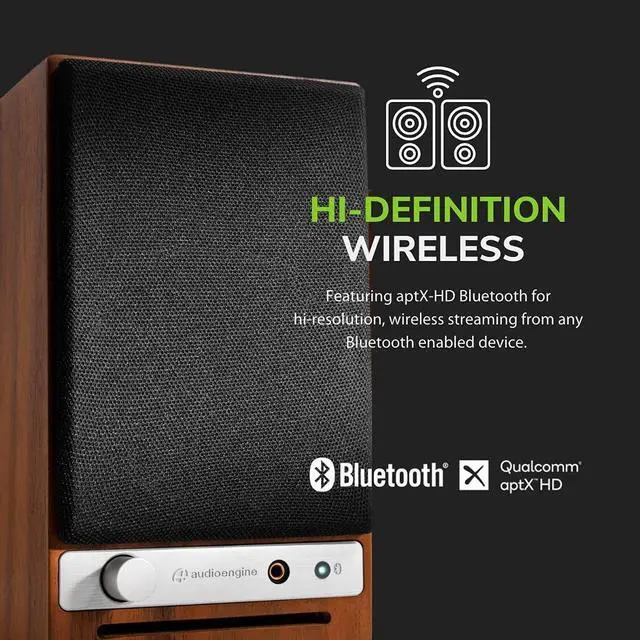 ROOM FILLING - A desktop shaking 60 watts of CD or Hi-Res quality pure clean audio for your computer or laptop ^^ BLUETOOTH APTX-HD - Hi-Res music capable and compatible with all online music streaming services ^^ EXTENDED RANGE - Simple wireless connection from up to 100ft away with your smartphone or computer ^^ CUSTOM TUNED - Custom tuned by musicians for that signature audioengine sound ^^ PLUG AND PLAY - 3.5 mm AUX, USB and RCA wired connections