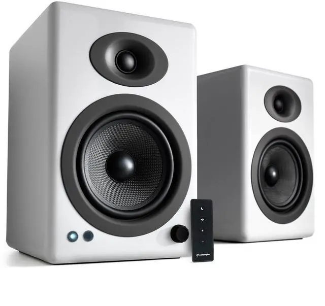 VERSATILE CONNECTIVITY: Stream high-resolution audio via Bluetooth 5.0 with aptX HD codec (100ft range), or connect via RCA or 3.5 mm inputs perfect for turntables, TVs, computers, and gaming systems with no external receiver required ^^ PREMIUM 24-BIT