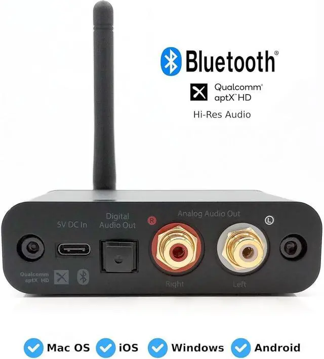 ^^ High-Resolution Audio Support: Experience unparalleled sound quality with our bluetooth audio receiver, supporting up to 32-bit audio. This bluetooth stereo receiver is perfect for audiophiles looking to maintain high fidelity when streaming music wirelessly to their audio systems.