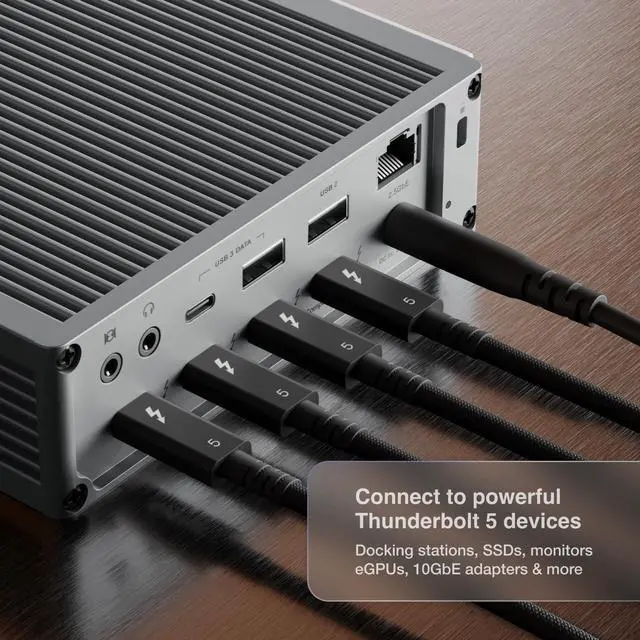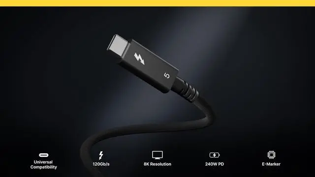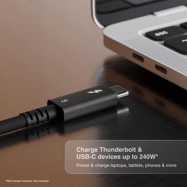 Blazing Performance up to 120Gb/s Thunderbolt 5 & 64Gb/s PCIe - The Thunderbolt 5 Pro Cable offers up to 120Gb/s, making it ideal for fast storage devices, eGPUs, and more. The cable supports 64Gb/s PCIe technology, which means that when you are connecting powerful storage devices, this cable can support speeds up to 6, 200MB/s. ^^ Next Level Power up to 240W - Perfect for devices such as Thunderbolt or USB-C Laptops, Tablets, Desktops, Phones, Docking Stations, External Thunderbolt or USB-C Storage, Thunderbolt to 10GbE Adapters, Thunderbolt eGPUs, 1080p, 4K, 5K, 6K, 8K Displays ^^ Ultimate Compatibility - The Thunderbolt 5 Pro Cable can be used with any Type-C computer or device regardless of whether it is Thunderbolt 5, Thunderbolt 4, Thunderbolt 3, USB4 v2, USB4, USB 3, or any other form of USB-C.
