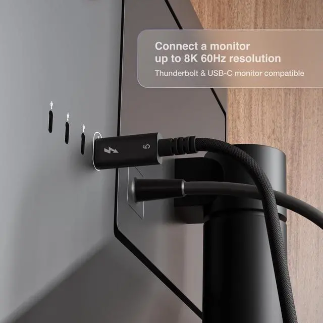 ^^ Premium Braided Cable - The Thunderbolt 5 Pro Cable features a premium braided cable thats built to last. They are made from high-quality materials to maintain consistent performance, reduce heat, and provide an optimum user experience every time. Durability tested to last a minimum of 20, 000 bends.