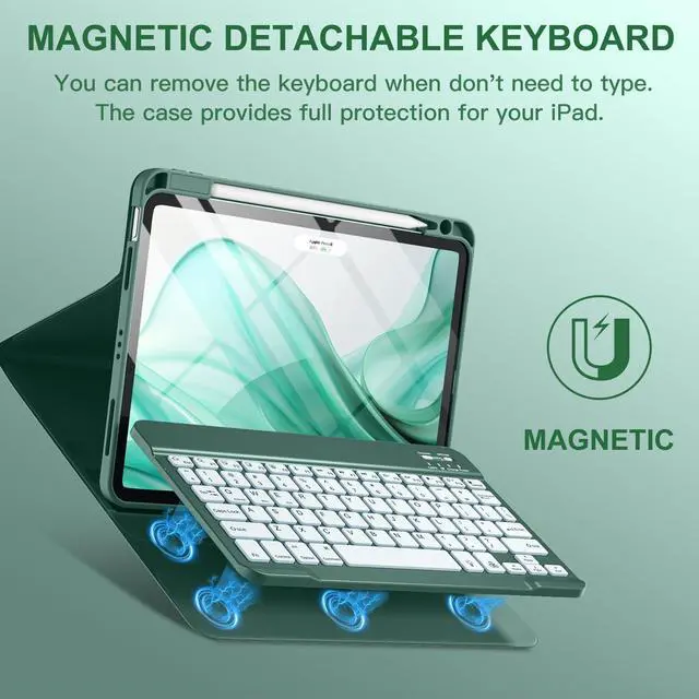 [(Detachable Backlit Keyboard)] The keyboard for iPad air 5/4 generation can be attached to the case with pretty strong magnets or detach completely. It is easy, fast and stable to connect via BT, reconnect immediately when turning it on. Using the optional backlight mode one color at a time or 7 colors breathing backlight, Picture yourself typing smoothly in the dark even at night for work