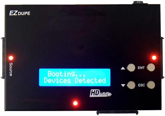 Acumen Disc Introduces the most convenient SATA Hard Drive Duplicator in the market! The most compact Hard Drive duplication systems that are hi-speed units with duplication speeds up to 150MBps for SATA Hard Drives in a single touch of a button. With easy to read LCD Display and user friendly unit that can fit in the palms of your hand! This SATA Hard Drive Duplicator is not a docking station that requires PC to connect. This true "standalone" Hard Drive Duplicator duplicates the entire hard drive bit by bit in a high speed of 150MB per second where traditional docking station can only transfer up to 28kb/per second.
