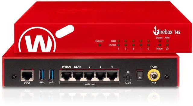 A robust, Cloud-based deployment and configuration tool comes standard with WatchGuard Firebox appliances. Local staff connects the device to power and the Internet, and the appliance connects to the Cloud for all its configuration settings. ^^ Firebox T45 models make network optimization easy. With integrated SD-WAN and optional 5G technology, you can ensure failover to the cellular network, minimize disruptive connectivity, and establish secure and reliable connections for small offices. ^^ Standard Support includes 24x7 access to technical support, with an unlimited number of incidents with a targeted response time of 24 hours for low priority, 8 hours for medium priority, 4 hours for high priority, and live calls for critical priority.